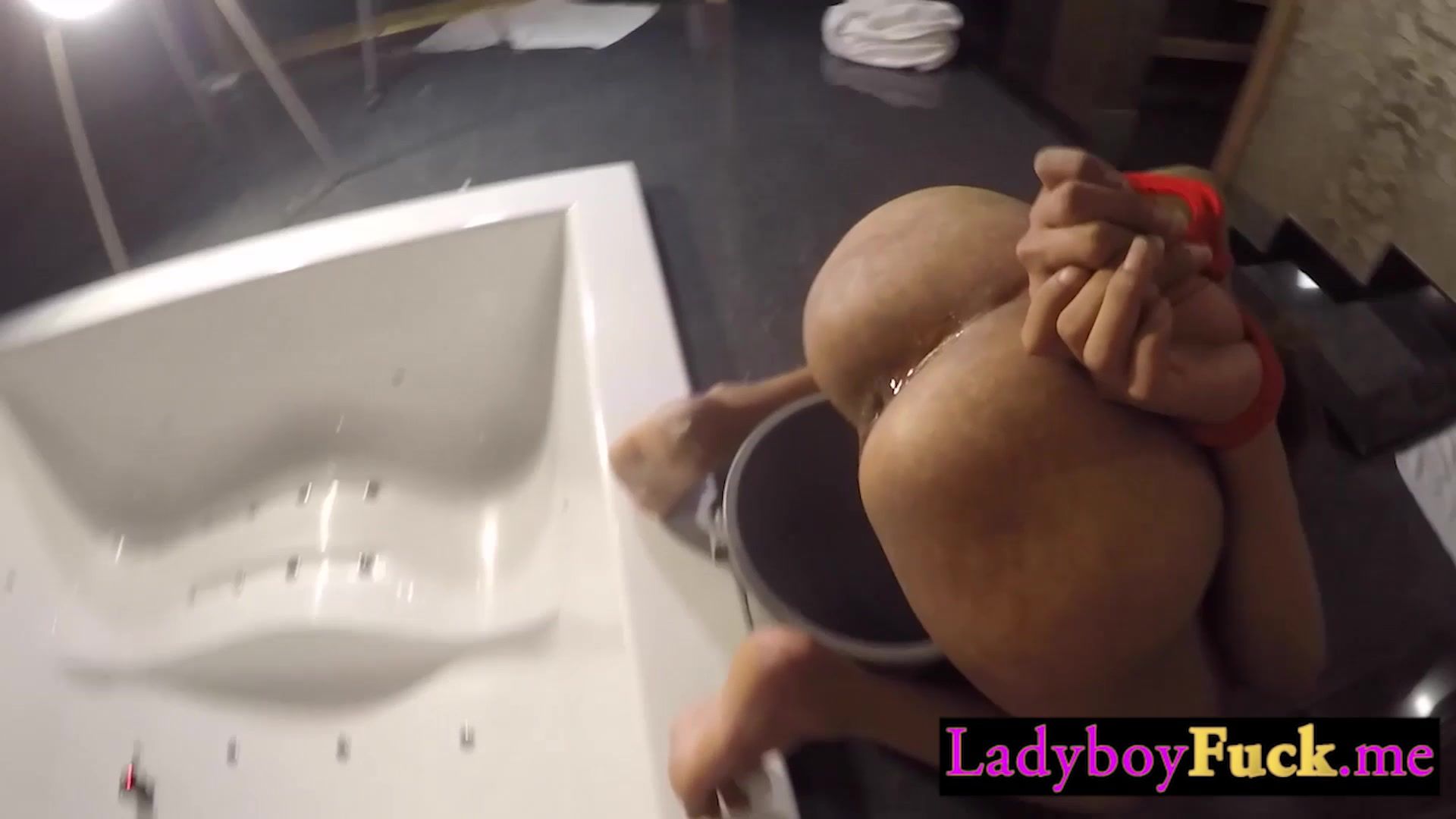 Thai shemale slut giving perfect blowjob to big dick white best friend
